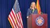 Arizona Attorney General Kris Mayes speaks from a podium. Photo: Cameron Arcand / The Center Square